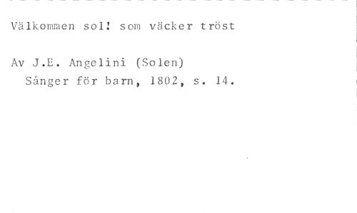 Välkommen sol! som väcker tröst //// Av J.E. Angelini (Solen) //// Sånger för barn, 1802, s. 14.