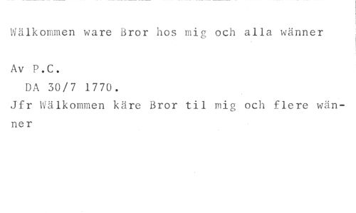 Wälkommen ware Bror hos mig och alla wänner //// Av P.C. //// DA 30/7 1770. //// Jfr Wälkommen käre Bror til mig och flere wänner