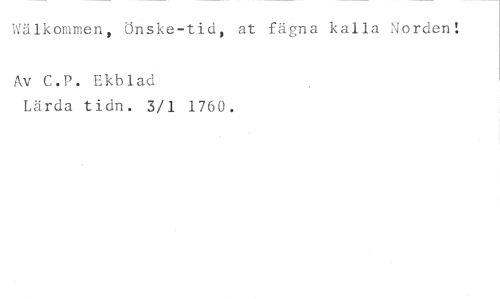 Wälkommen, önske-tid, at fägna kalla Norden! //// Av C.P. Ekblad //// Lärda tidn. 3/1 1760.