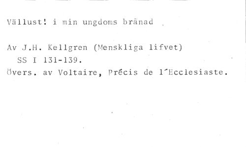 Vällust! i min ungdoms brånad , //// Av J.H. Kellgren (Menskliga lifvet) SS I 131-139. //// Övers. av Voltaire, Pr6cis de l'Ecclesiaste.