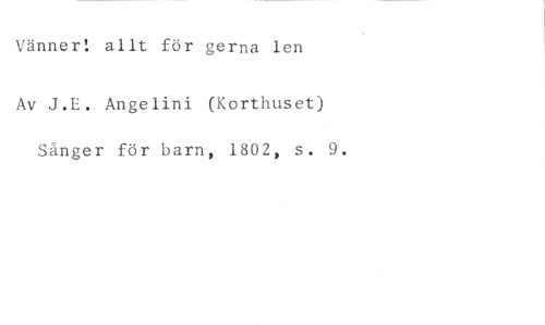 Vänner! allt för gerna len //// Av J.E. Angelini (Korthuset) Sånger för barn, 1802, s. 9.