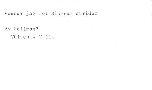 Vänner jag mot Biörnar strider //// Av Bellman? //// Völschow V ll.