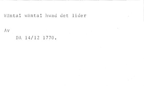 Wänta! wänta! hwad det lider //// DA 14/12 1770.