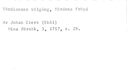 Värdinnans välgång, Värdens frögd //// Av Johan Elers (Skål) //// Mina försök, 3, 1757, s. 29.