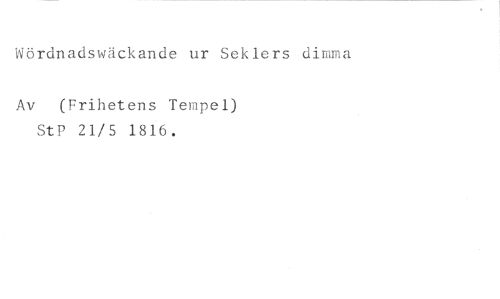 Wördnadswäckande ur Seklers dimma //// Av (Frihetens Tempel) StP 21/5 1816.