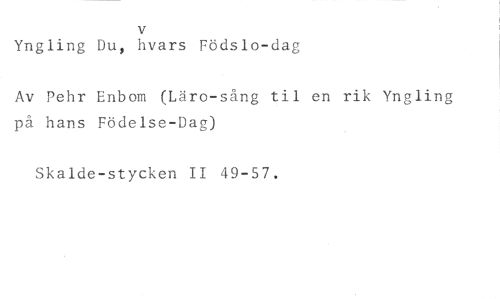 v //// Yngling Du, byars Födslo-dag //// Av Pehr Enbom (Läro-sång til en rik Yngling på hans Födelse-Dag) //// Skalde-stycken II 49-57,