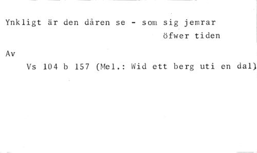 Ynkligt är den dåren se - som sig jemrar //// öfwer tiden //// Av //// Vs 104 b 157 (Mel.: Wid ett berg uti en dal)