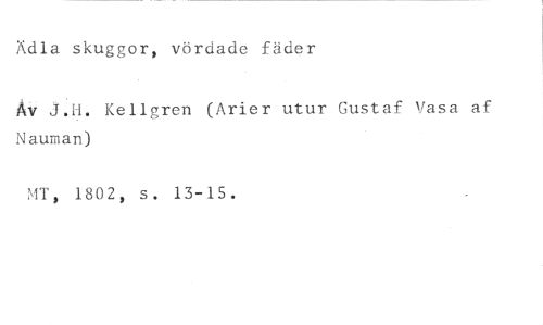 Ula skuggor, vördade fäder //// Av J.H. Kellgren (Arier utur Gustaf Vasa af Nauman) //// NIT, 1802, s. 13-15.
