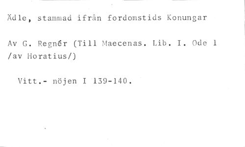 Ädle, stammad ifrån fordomstids Konungar //// Av G. RegrAr (Till Maecenas. Lib. I. Ode 1 /av Horatius/) //// Vitt.- nöjen 1 139-140.