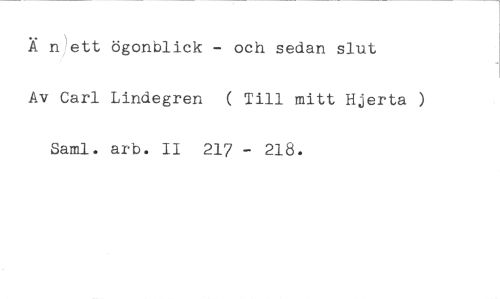Ä n'ett ögonblick - och sedan slut //// Av Carl Lindegren ( Till mitt Hjerta ) Saml. arb. II 217 - 218.