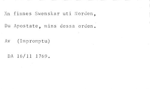 Än finnes Swenskar uti Norden, Du Apostate, mins dessa orden. //// Av (Impromptu) DA 16/11 1769.