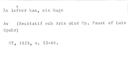v //// Än lefver han, min Hugo //// Av (Recitatif och Aria utur Or. Faust af Luis //// Spohr) //// MT 1828, s. 53-60.