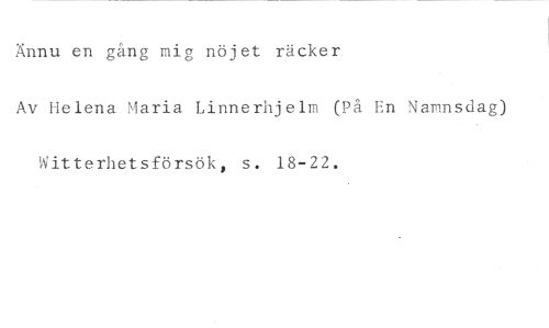 Ännu en gång mig nöjet räcker //// Av Helena Maria Linnerhjelm (På En Namnsdag) Witterhetsförsök, s. 18-22.