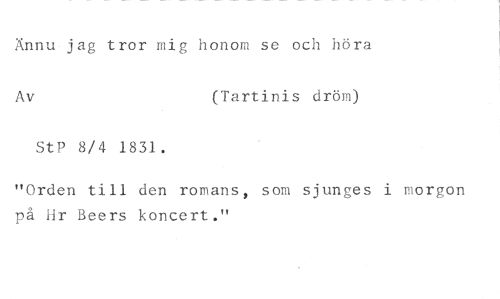 Ännu-jag tror mig honom se och höra //// Av (Tartinis dröm) //// StP 8/4 1831. //// "Orden till den romans, som sjunges i morgon på Hr Beers koncert."