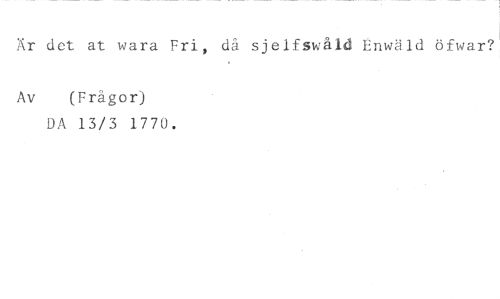 Är det at wara Fri, då sjelfswåld Enwäld öfwar? //// Av (Frågor) //// DA 13/3 1770.