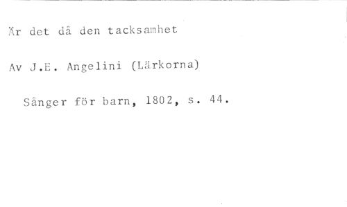 Är det då den tacksamhet //// Av J.E. Angelini (Lärkorna) Sånger för barn, 1802, s. 44.