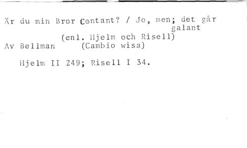 Är du min Bror eöntant? / Jo, men; det går //// galant //// (enl. Hjelm och Risell) //// Av Bellman (Cambio wisa) //// Hjelm II 249; Risell I 34.