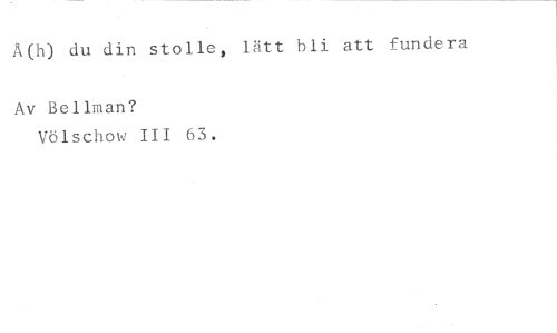 A(h) du din stolle, lätt bli att fundera //// Av Bellman? //// Völschow III 63.