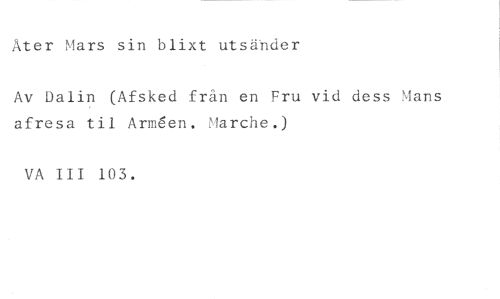 Åter Mars sin blixt utsänder //// Av Dalin (Afsked från en Fru vid dess Mans afresa til Armben. Marche.) //// VA III 103.