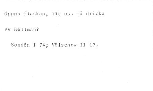 Öppna flaskan, lät oss få dricka //// Av Bellman? //// Sonden I 74; Völschow II 17.